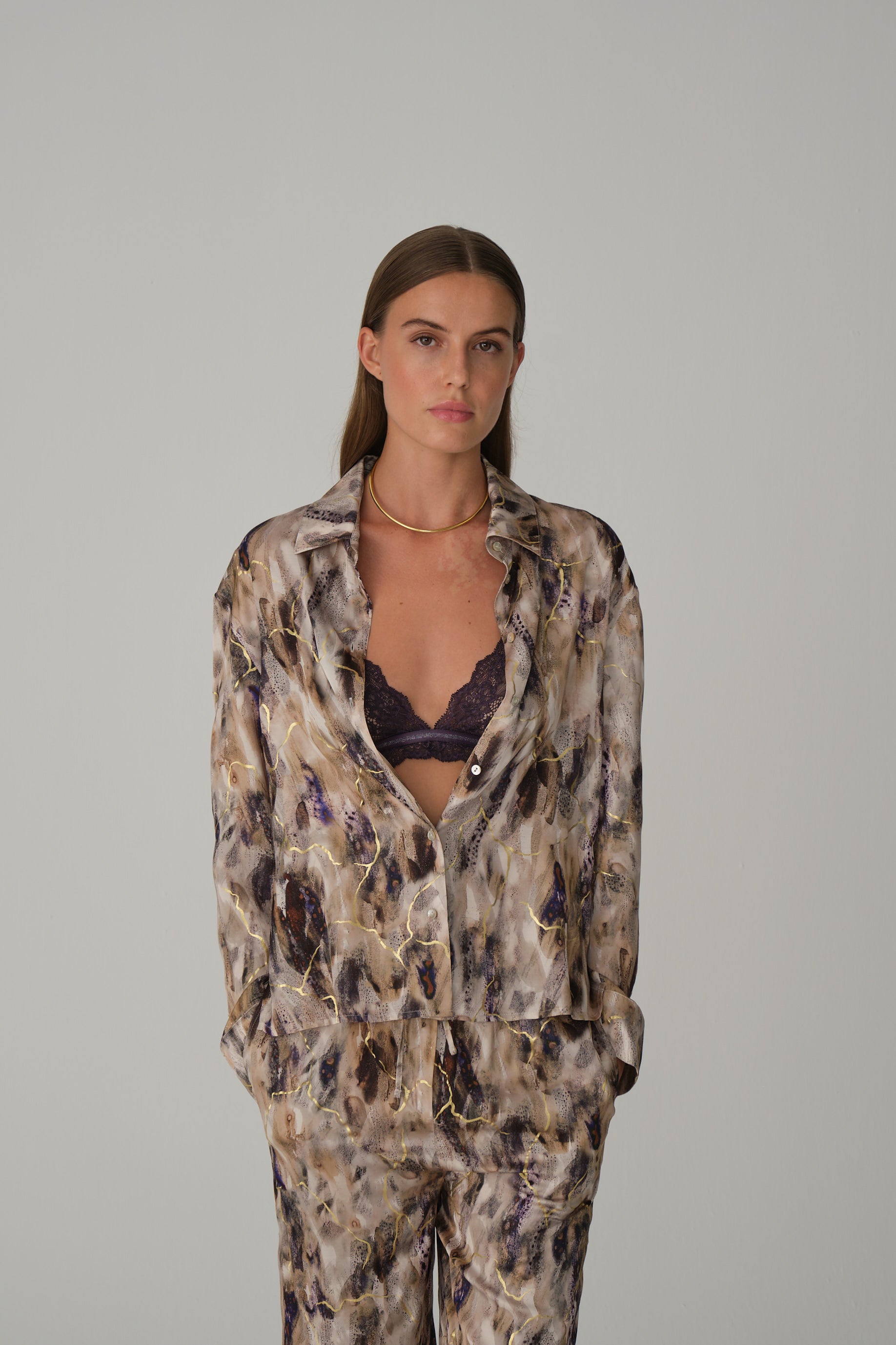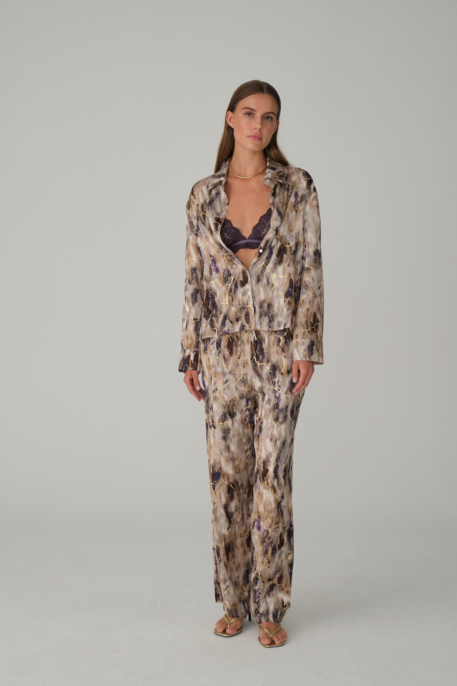 Model's height is 174 cm and measurements are 84 - 61 - 91 cm.