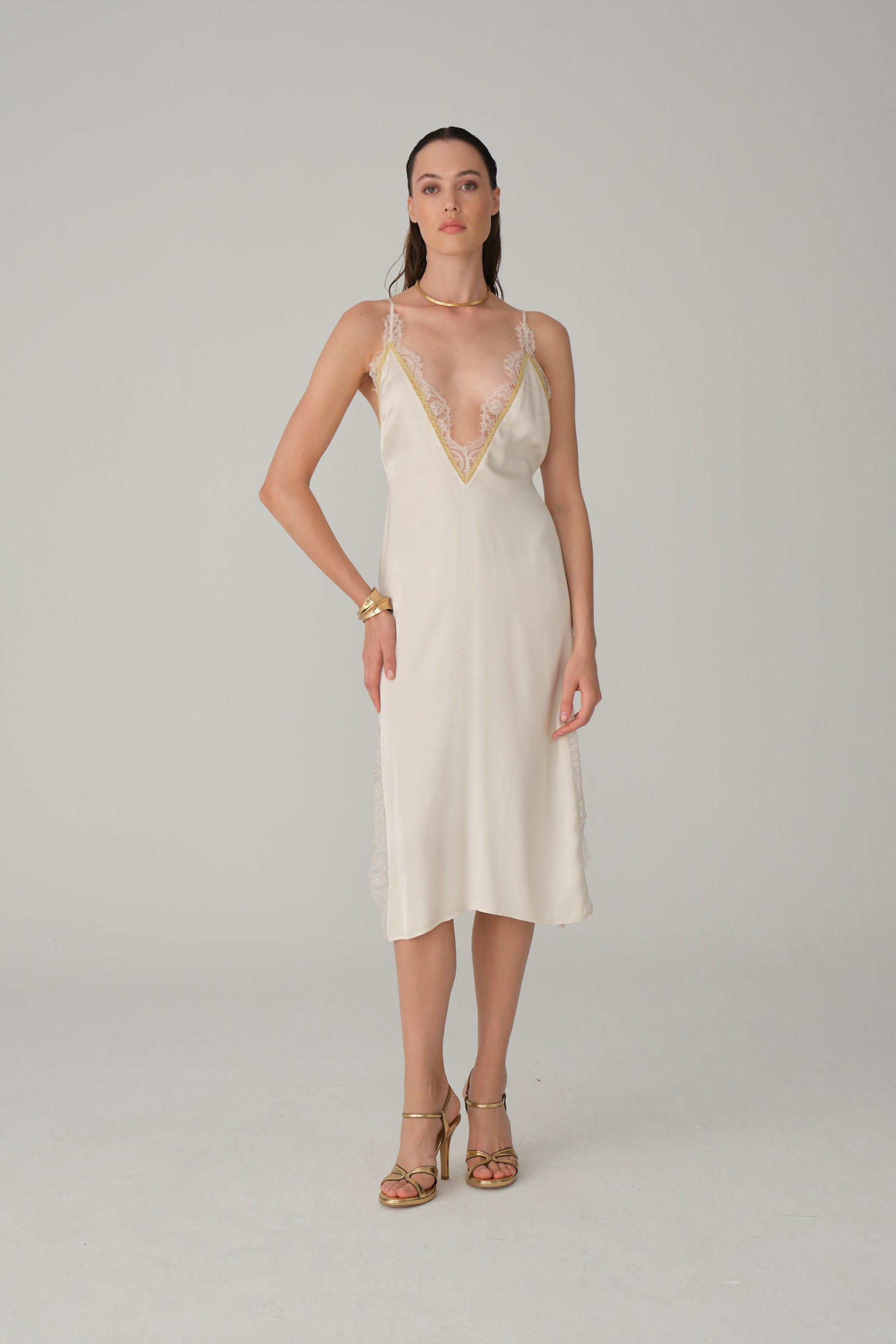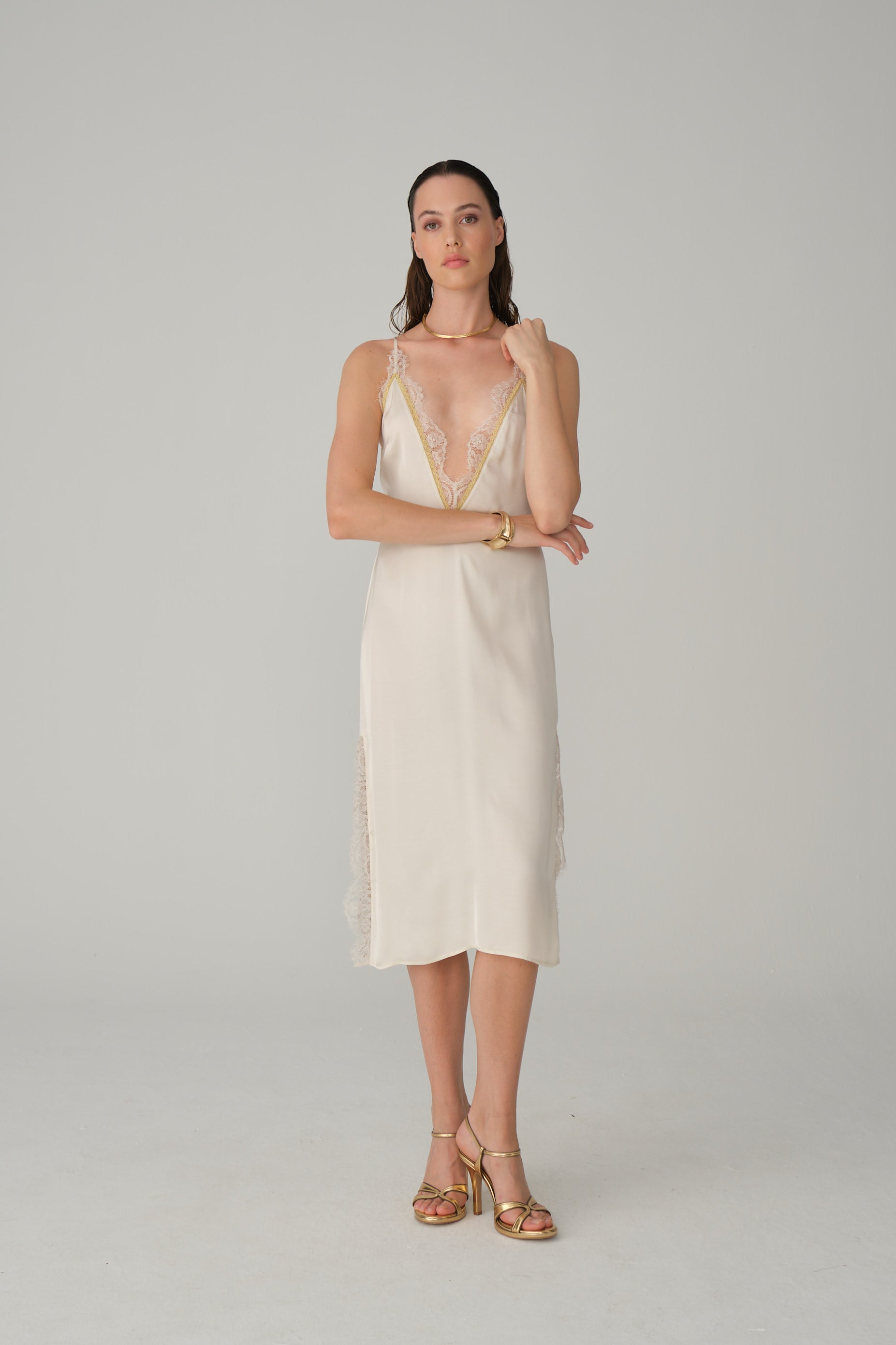 Modelin boyu 174 cm, ölçüleri ise 84 - 61 - 91 cm'dir.